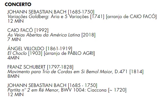 “Caio e eu nos conhecemos, crescemos juntos, acompanhando projetos, compartilhando ideias, pensando e discutindo. Seria fantástico se as novas gerações de intérpretes entendessem quanto é importante estimular a criação atual nas Artes, e ser disponíveis a fazer parte dela, por meio de seus instrumentos. Significa, para os interpretes, não se contentar em trilhar os maravilhosos caminhos dourados da tradição, preciosa e eterna, mas dedicar parte do próprio tempo a explorar o menos conhecido, tomando riscos, aceitando desafios, e apostando em jovens criadores. Vivendo essa coragem, e essa vontade, momentos profundos e encantadores como este que vivi hoje serão a recompensa. Pois hoje não tocamos só uma linda obra musical, e não tocamos só uma criação de um amigo, mas tocamos algo teve nossa participação em sua gênese. E mais uma vez me sinto privilegiado.”