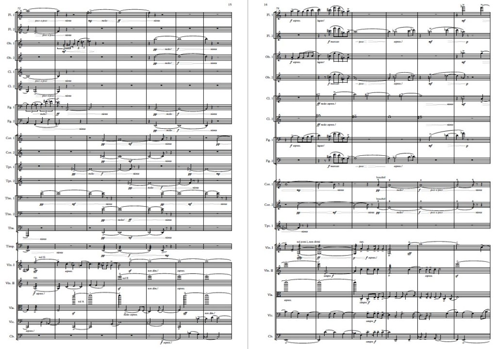 “O pássaro de areia”, excerto da partitura. Ontem, as últimas notas foram escritas para esta peça – encomendada por André Cardoso, para o Projeto SINOS.