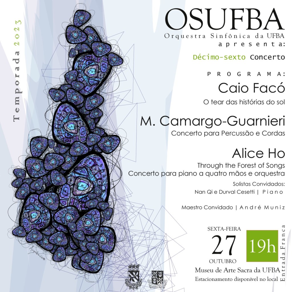 Após os concertos da Filarmônica UFRN em sua turnê pelo Nordeste – Natal, Aracaju, Recife e João Pessoa – nesta sexta, “O Tear das Histórias do Sol” será apresentada pela primeira vez em Salvador, pela Orquestra Sinfônica da UFBA, em um programa com Alice Ho (Canada) e Guarnieri, com direção de André Muniz.